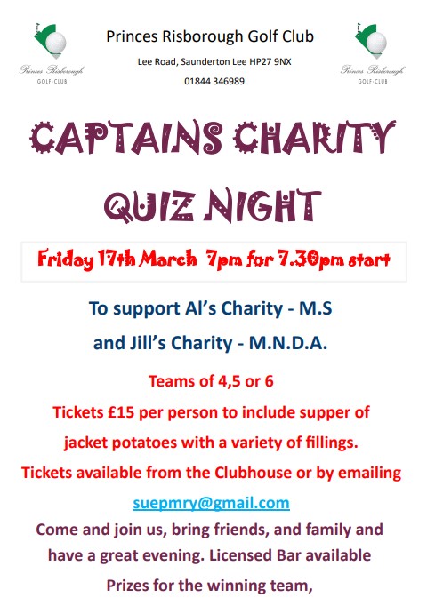 If you have not already done so and you wish to attend, please apply for your tickets for the Charity Quiz Night being held on 17th March. I attach a further copy of the poster.