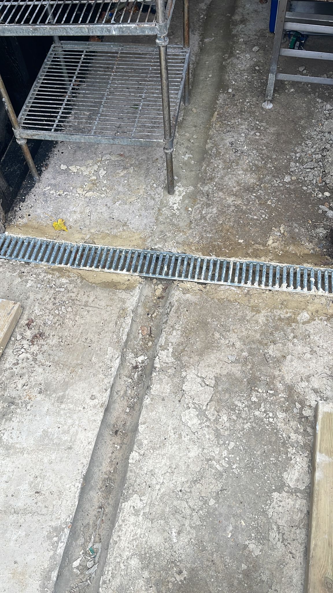New bin area complete with grate to enable easy cleaning of the area. Water drainage pipe goes under ground.