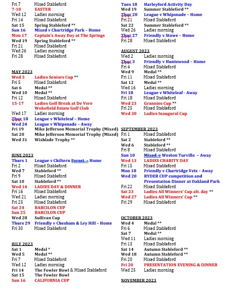We hope to be back to a full fixtures list for April, but meanwhile enjoy your golf and hopefully we will get back onto the normal tees.