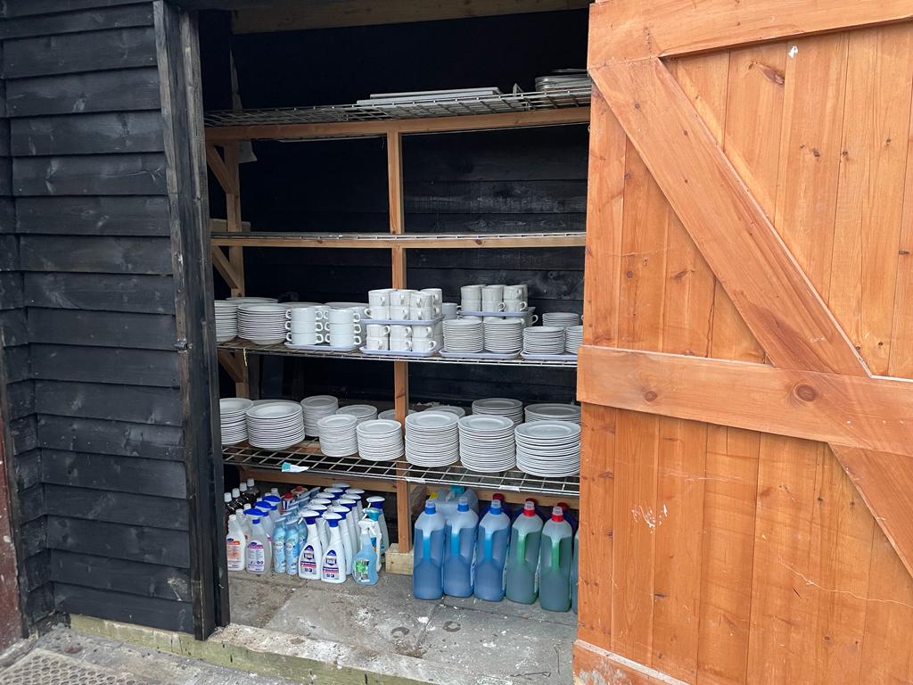 New storage shed shelving for Bulk items which would otherwise clutter the Clubhouse (NB crockery will move to new potwash area)