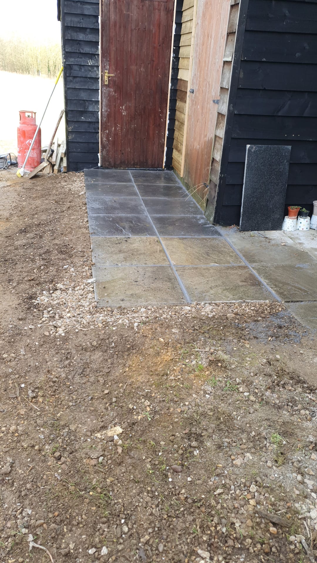 New paving to stop the area becoming a mud trap
