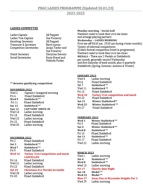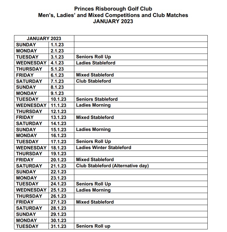 The second attachment is the current January 2023 Club Diary. If you wish to play in any of the competitions then please simply follow the normal process for entry.