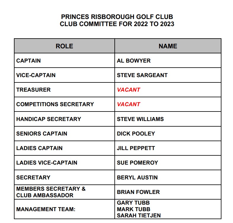 It is important I remind you that there are still some vacancies on your committee, where we need some assistance particularly with the role of Competition Secretary. This role lends itself to being organised into at least two sections and we are therefore looking for a couple of members to take on a portion of the role. If you want more information about this, please contact either Steve Sargeant or me.