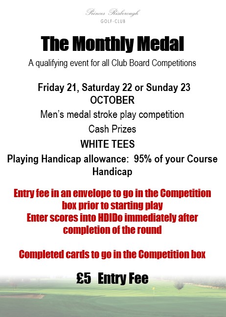 Monthly Medal this weekend (Fri, Sat, Sun)