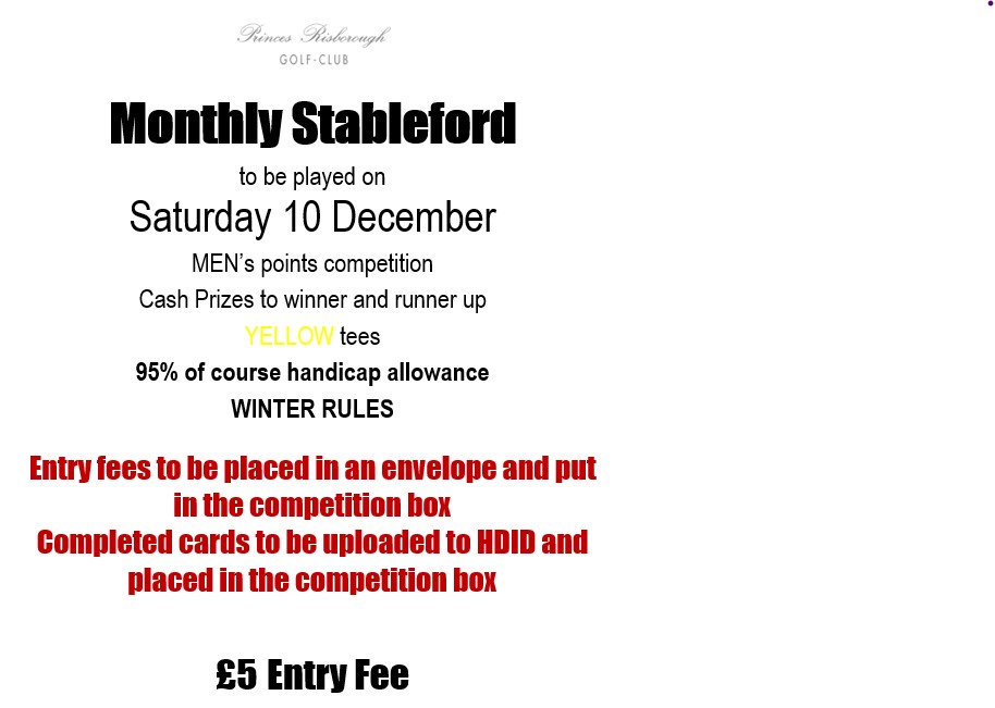 Sat 3 December Stableford