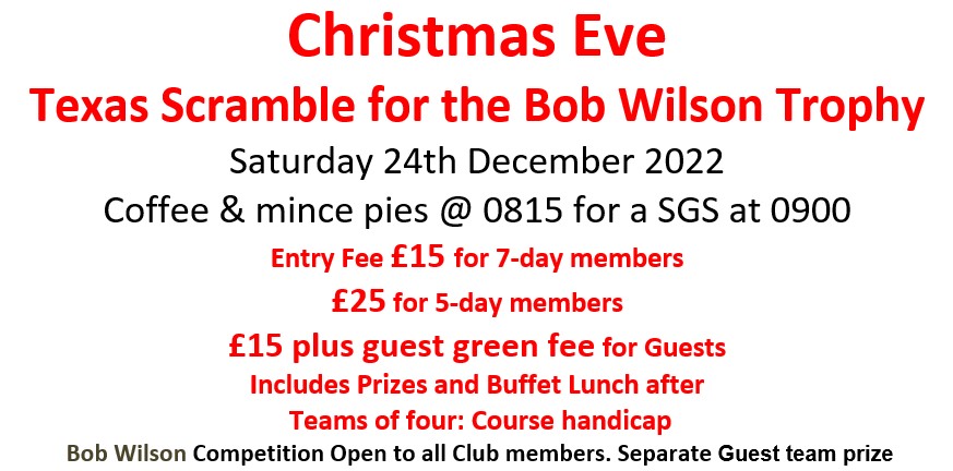 Note to 5 Day Members - Please see the offer for the new Weekend Value Pack for 5 Day Members. The Green Fee element of the Xmas Texas Scramble is Free when you take up this offer