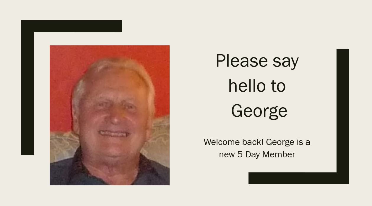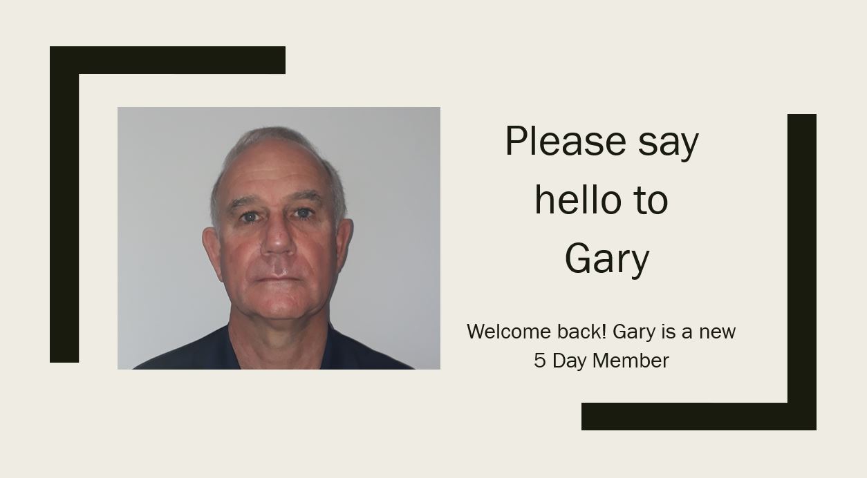 Please say a warm welcome back to Gary – he is a new 5 day member