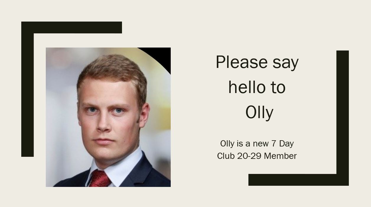 Please say hello to Olly, he is a new 7 Day – Club 20-29 Member