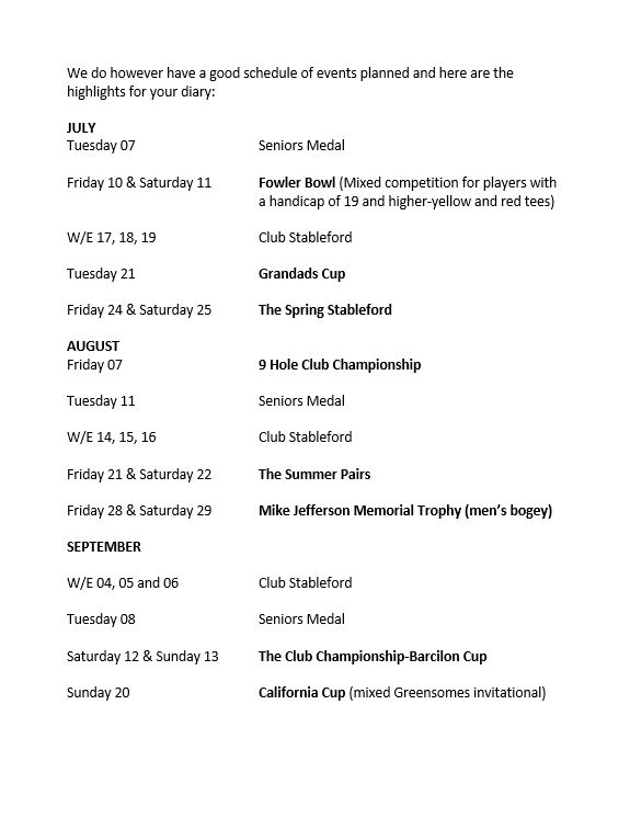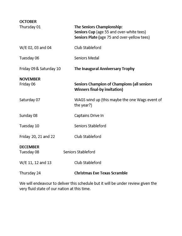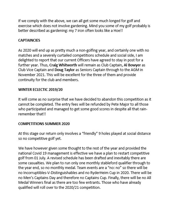 When the Government re-opens golf courses, we will invite those out of contract to renew - no action required at the moment. Per the prior update - compensation for lost time due to the golf course closure will be deducted from your renewal fees where appropriate.