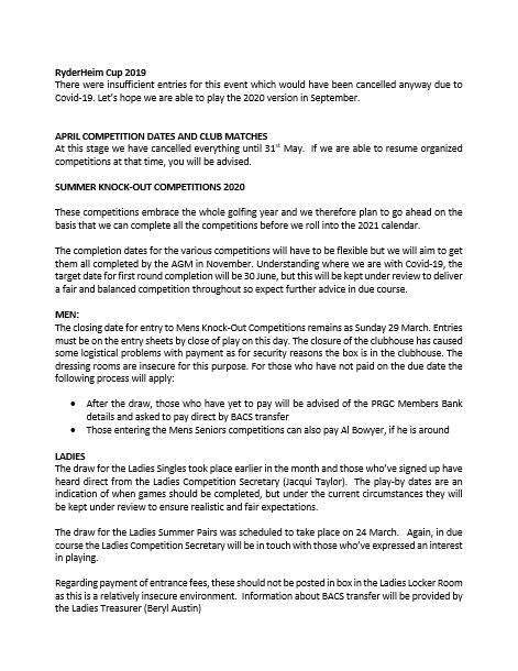 We are fully supportive of the Government's and Golf England's position with regards to prioritising your health and our fragile NHS system.