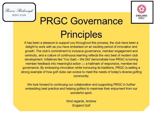At a proprietary golf club like Princes Risborough Golf Club, there is no formal requirement for a constitution in the way that member-owned clubs typically operate. That said, we are proud to be a member-centric club, and have proactively developed the governance principles outlined below to reflect the values that matter most to us.