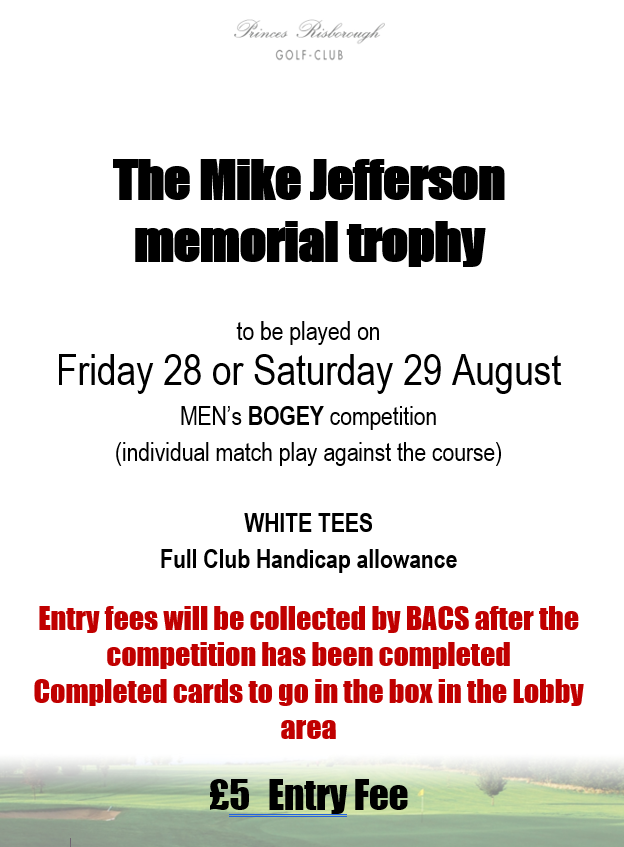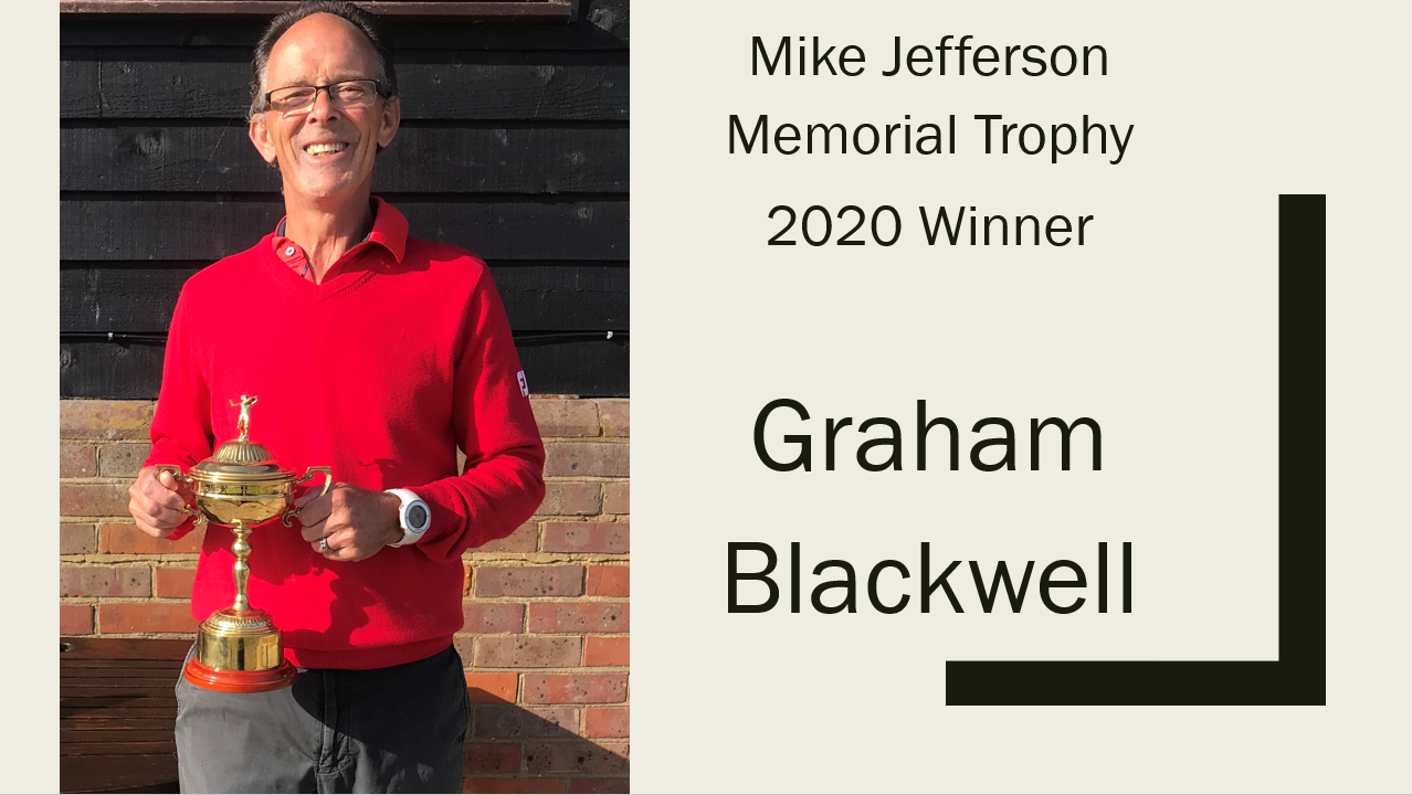 27 players competed in this year’s competition in memory of Mike Jefferson. The conditions were tough with a strong north wind blowing and only 3 players managed to beat par! The Winner was Graham Blackwell with a score of plus 5, which is an outstanding score given the conditions. Dean Herritty on plus 2 and Barry Woledge on plus 1 were the only other players to beat par. Graham is the first “Grumpy” ever to win this trophy-and it was Mike Jefferson who founded the Grumpies all those years ago.