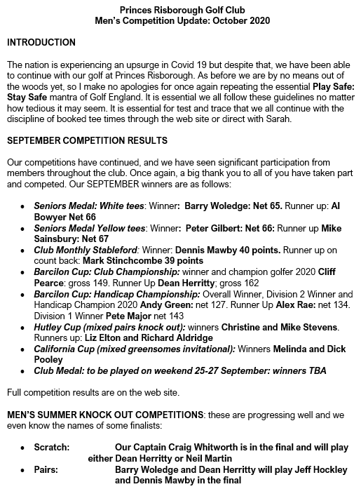 © 2017 - Princes Risborough Golf Club. Company registration: 8065169. Lee Road, Saunderton Lee, Princes Risborough, Bucks, HP27 9NX. Telephone: 01844 346989